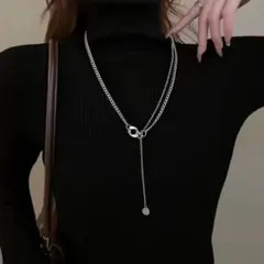 チェーン マンテル ネックレス ゴールド 韓国風 高見え ステンレス シンプル