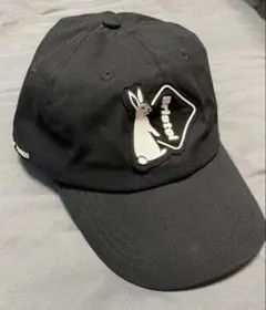 FRロゴとサイドのキャラクター刺繍が特徴の黒いベースボールキャップ。