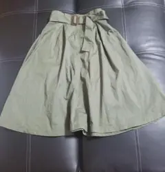 ビスで購入したブルーグレーのリボン付きひざ丈スカートです。