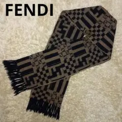 フェンディ FENDI マフラー ストール フリンジ ズッカ柄 ペカン柄 ウール