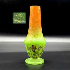こちらのように有彩色の素地にエナメル彩を施した作品は、ガレ工房の歴史の中でも、ガレ本人がその手腕を振るった第一工房期の作品となります。