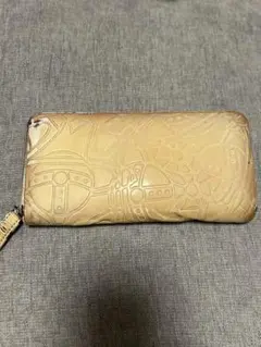 シンプルで洗練されたレザー長財布、赤色、ゴールドファスナー付き。