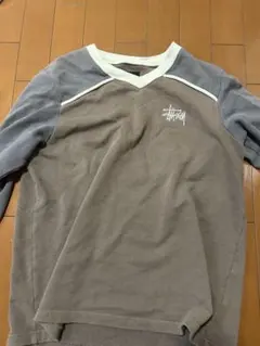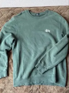グレーのSTUSSY製Mサイズトレーナー、コットン混紡素材で快適な着心地。