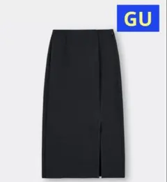 GU カットソーナローミディスカート 黒 S ウエストゴム スリット 伸縮性