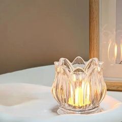 装飾的なワイヤー構造のキャンドルホルダー、クリスタル風ビーズ付き。