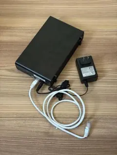 BUFFALO製LS210D NAS、電源アダプターとケーブル付属、ブラック。