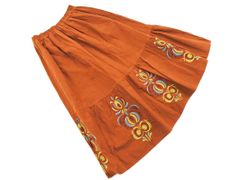 オレンジ系の色のチェック柄で少しフレア気味のロングスカートです。