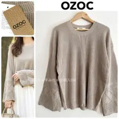 【オゾック】WSラメ透かしフェザー(38)ベージュ ラメ ゆったり カジュアル