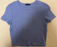 ザラ ZARA☆リブTシャツ カットソー インナー フリル 水色 ブルー M