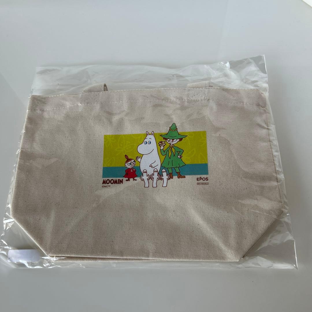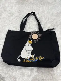 ムーミンキャラクターのプリントが施されたキャンバス製のトートバッグ。