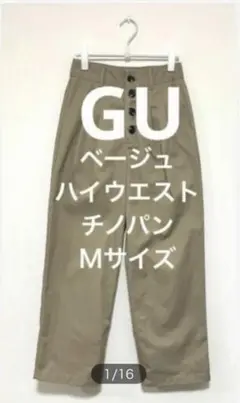 【訳あり】GUチノ ハイウエスト ボタン ワイドパンツ M ベージュ
