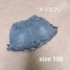 メゾピアノ リボン付きダークデニムハーフパンツ