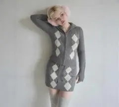 andmary Argyle ribbon knit set up