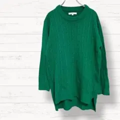 アメリカンホリック ニット セーター 長袖 ケーブル編み ウール混 厚手 L黄緑