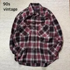 古着オンブレチェック長袖ネルシャツM
