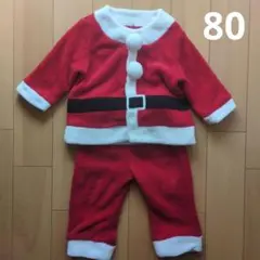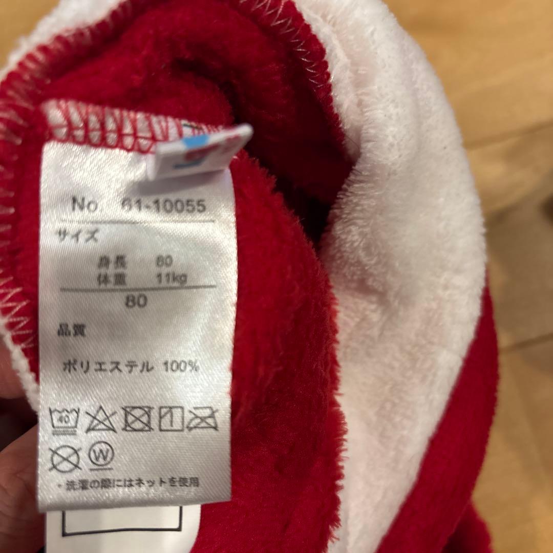 フリース素材の赤いサンタコスチューム、ウエストゴムのパンツ付き。