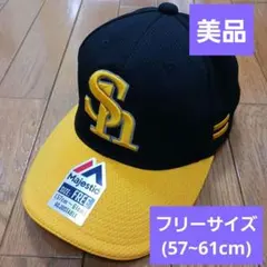 通気性のあるメッシュ素材のキャップ、黒と白の配色でロゴ付き。