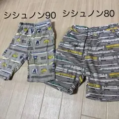 オリーブ色の調整可能ウエストバンド付きパンツとショートパンツのセット。