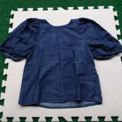 ドット柄のフリル付きデザインで、可愛らしい印象の140cmサイズのトップスです。
