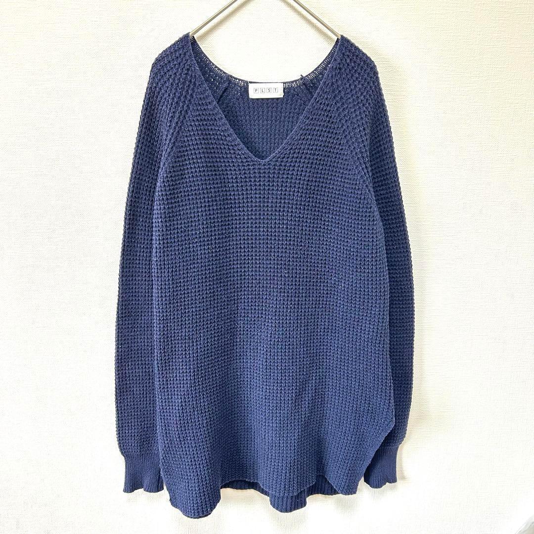 プラステ ニット セーター 綿 麻 ウール Vネック 長袖 ざっくり 秋物