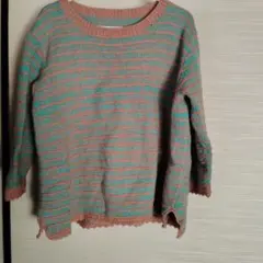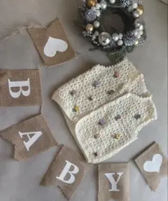 ベージュの手編みカーディガン風ニット、ボタン付きデザイン。