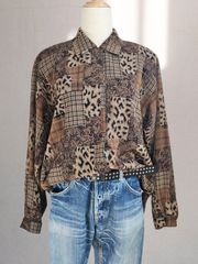 ブラウス シャツ ストライプ ロング丈 パッチワーク マルチカラー 個性派 長袖