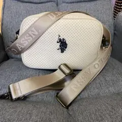 ネイビーカラーのU.S. POLO ASSN.ショルダーバッグ、ロゴ刺繍と調節可能なストラップ付き。