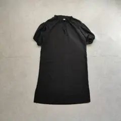 美品✨ロングワンピース ベルト付き 半袖 フォーマル ビジューボタン ブラック 裏地 二次会 入学式 卒業式 綺麗め