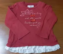 小花柄の生地が上品で襟ぐり袖口のフリルがとても可愛いTシャツでした。