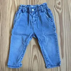 ベージュのリブ編みフレアパンツ、100cm以上向け。