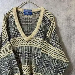 ニット セーター ウール Vネック 総柄 ワインレッド レトロ 古着 Y2K