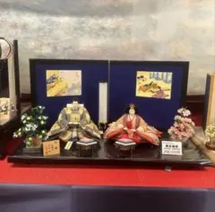 お内裏様・お雛様ともにお顔立ちが美しく、全体的に落ち着いた上質感のある平飾りタイプとなっております。