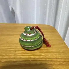 ☆001 瀬戸焼 ドラゴンデザインの置物 緑色 土鈴 高さ6.5cm
