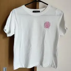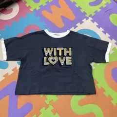 フード付きのネイビーカラーTシャツ、ロゴデザインでカジュアルなスタイル。