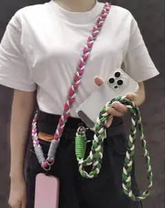 このスマホショルダーストラップは、スマートフォンだけでなく、キーホルダーやその他のアクセサリーも持ち運ぶことができます。多様な持ち方が可能で、日常生活での利便性を向上させます。