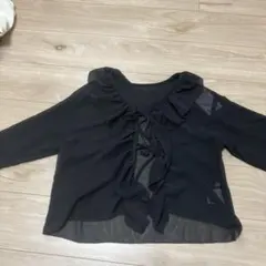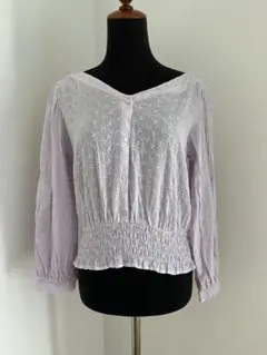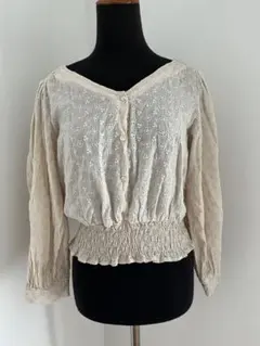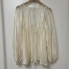 しまむら シアートップス ホワイト 長袖 M フリル付きブラウス シースルー