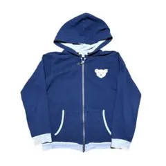 ネイビーのパーカー、クマの刺繍付き。
