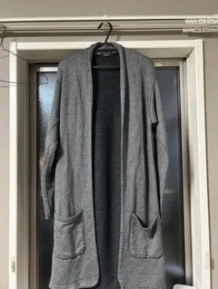 ブロックパターンのカーディガン、Lサイズ、ブラックとグレーの配色が特徴。