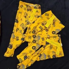建設機械のプリントが特徴の黄色スウェットボトムス、ストレッチ素材。