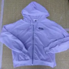 グレーのフード付きパーカー、ハートのパッチ付き、XSサイズ。