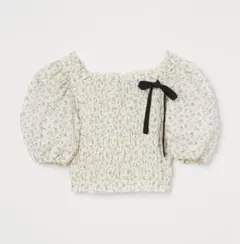 H&M青と白の花柄オフショルダー半袖トップス