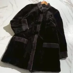 ブラウンの光沢のあるフォックスが沢山あしらわれたロングコートです。