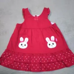 ウサギの刺繍が施された赤いジャンバースカート