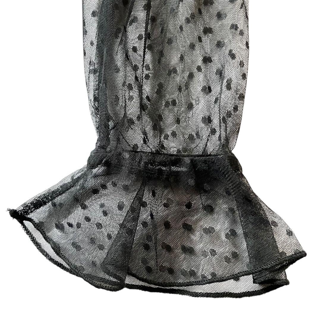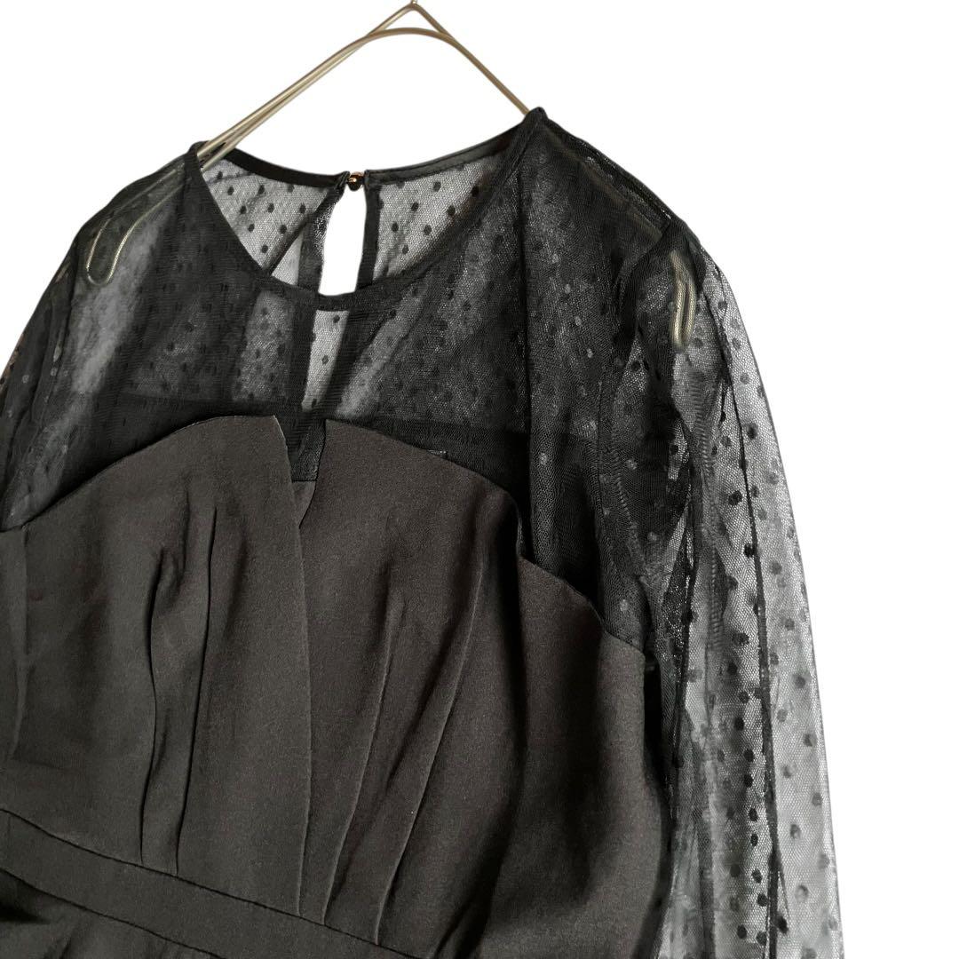 袖〜デコルテ部分ドット柄チュール素材、長袖、