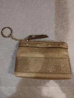 ヒョウ柄デザインのコーチ製コインケース、複数のカードスロット付き。