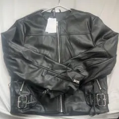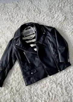 H&M スタンドカラーのブラウンライダースジャケット、フロントに3つのポケット付き。