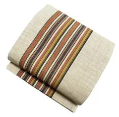 名古屋帯紬オレンジ色黄色単衣橙色橙女着物帯紡ぎつむぎ織りの帯幾何学柄仕立て上がり