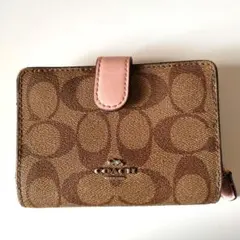 1800□COACH 二つ折り財布 ピンク パテントレザー bc11yt
