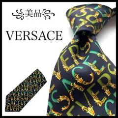 【美品】ヴェルサーチ バロッコ ロゴ ストライプ ブラック ネクタイ