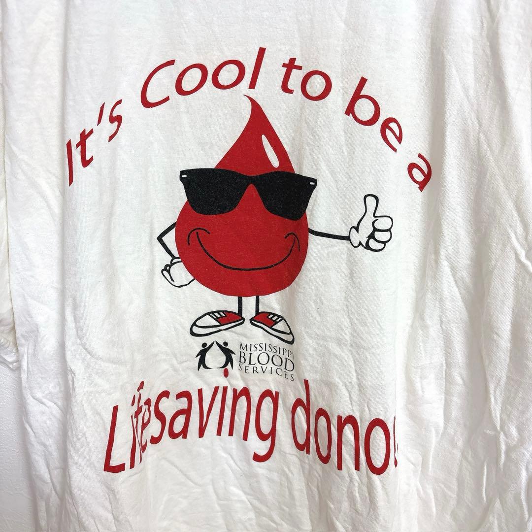 GILDAN製のXLサイズ、ミシシッピ州の献血サービスをテーマにしたデザインのTシャツ。